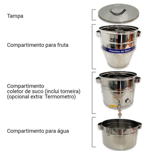 Panela Suqueira para fazer diversos sucos, 100% em inox higiênico (não libera resíduos químicos no suco)!