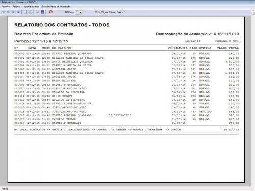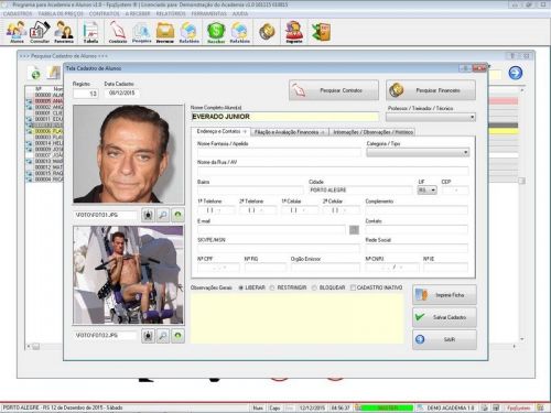 Gerenciar Contratos / Cadastro de Alunos com foto / Atendentes / Relatório dos Contratos / Aniversariantes / Tabela de Preço Modelo de Contratos / Contas a Receber / Recibo de Pagamento / Acesso por Nível de Usuário