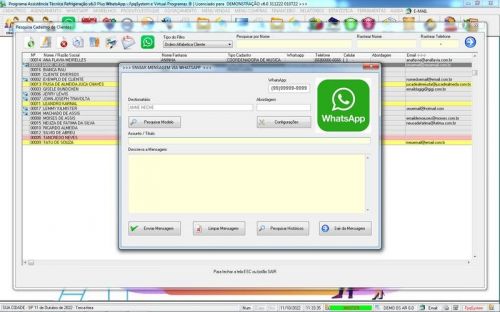 Principais vantagens: - Mensagem via WHATSAPP - Não tem Limite de Cadastro - Funciona no Windows 7, Windows 8, Windows 10, Windows 11 32 e 64 Bits - Não precisa de internet - Roda direto no Pen Drive ou HD externo - Roda em Rede Compartilhando os Dados - Não tem mensalidade - Não tem anuidade - Suporte e Atendimento OnLine via site ou menu ajuda do programa - Equipe FPQsystem treinada e preparada para qualquer dúvida - Opção de Backup do Programa - Pode formatar o computador e reinstalar o programa sem restrição - Você mesmo personalizar o fundo de tela do programa - Você mesmo configura a logomarca no programa